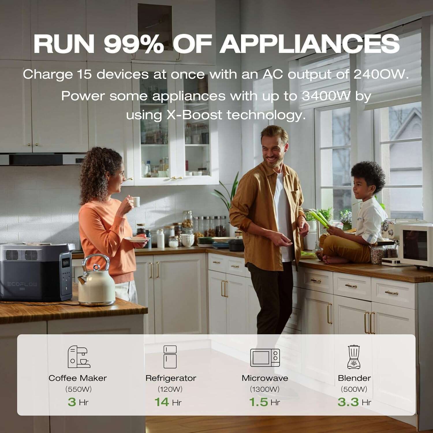 - 2400W continuous power (4800W surge) for demanding appliances