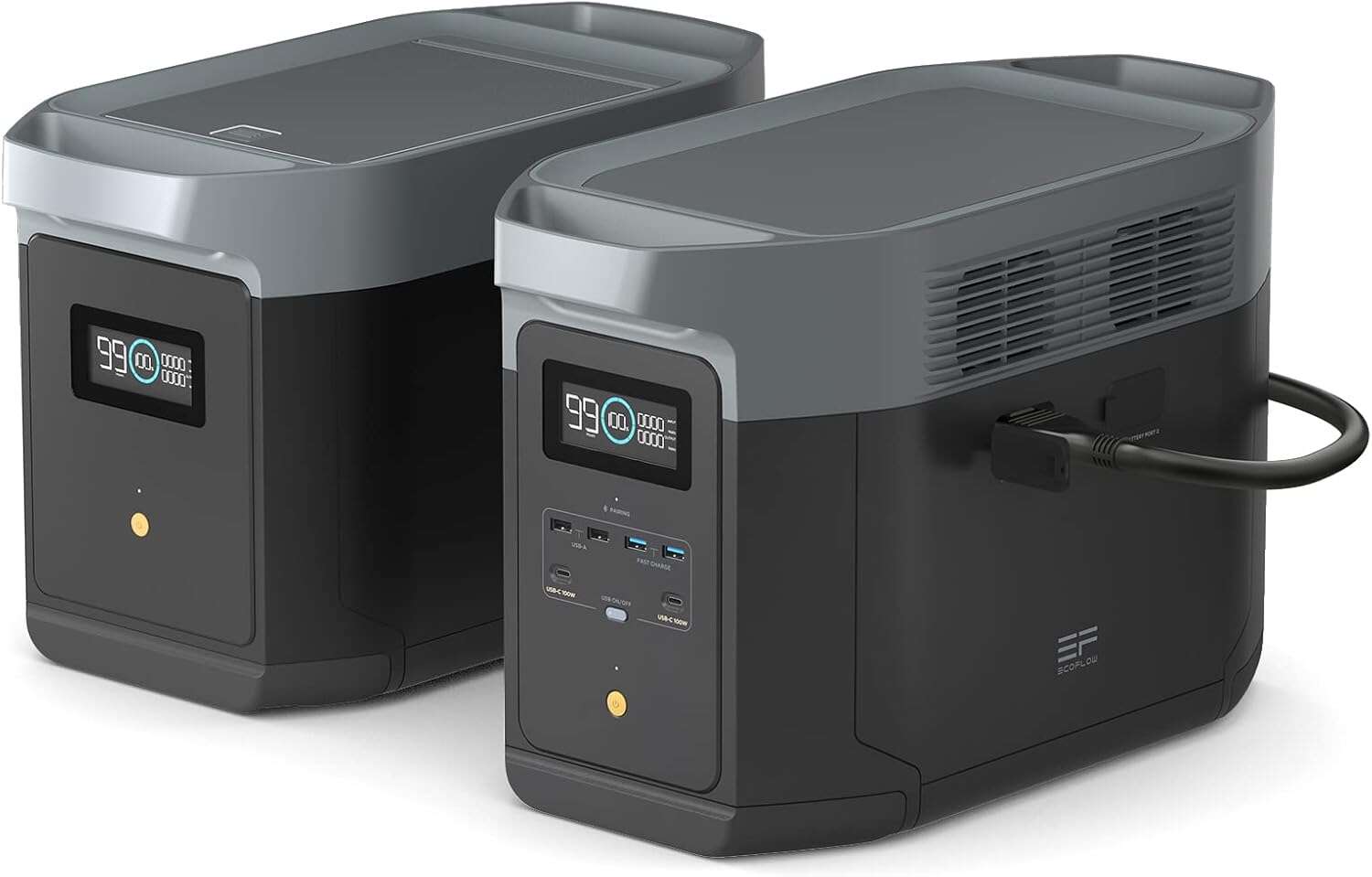 The EcoFlow Delta 2 Max is a high-capacity, high-performance portable power station that serves as a versatile solar generator for both everyday and emergency use. With 2400W continuous output (4800W surge), it can power a wide range of devices and appliances — from refrigerators and CPAP machines to power tools and small air conditioners — making it an excellent solution for home backup power, camping, RV travel, job sites, and off-grid adventures.