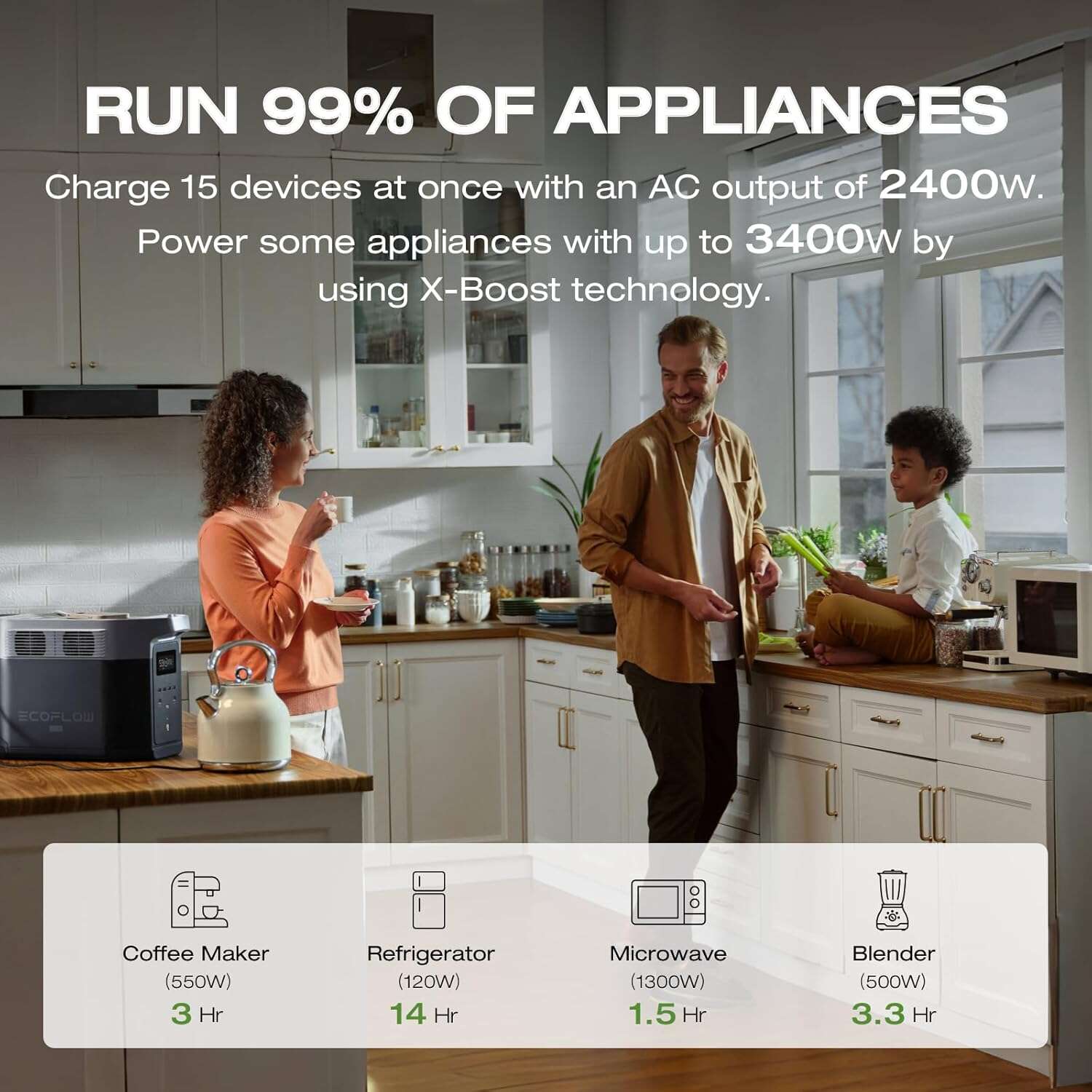 - 2400W continuous power (4800W surge) for demanding appliances