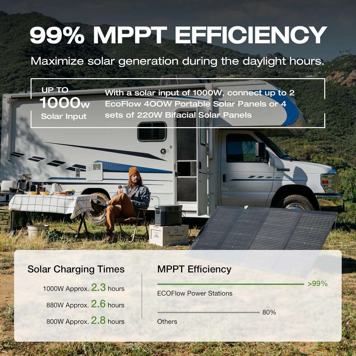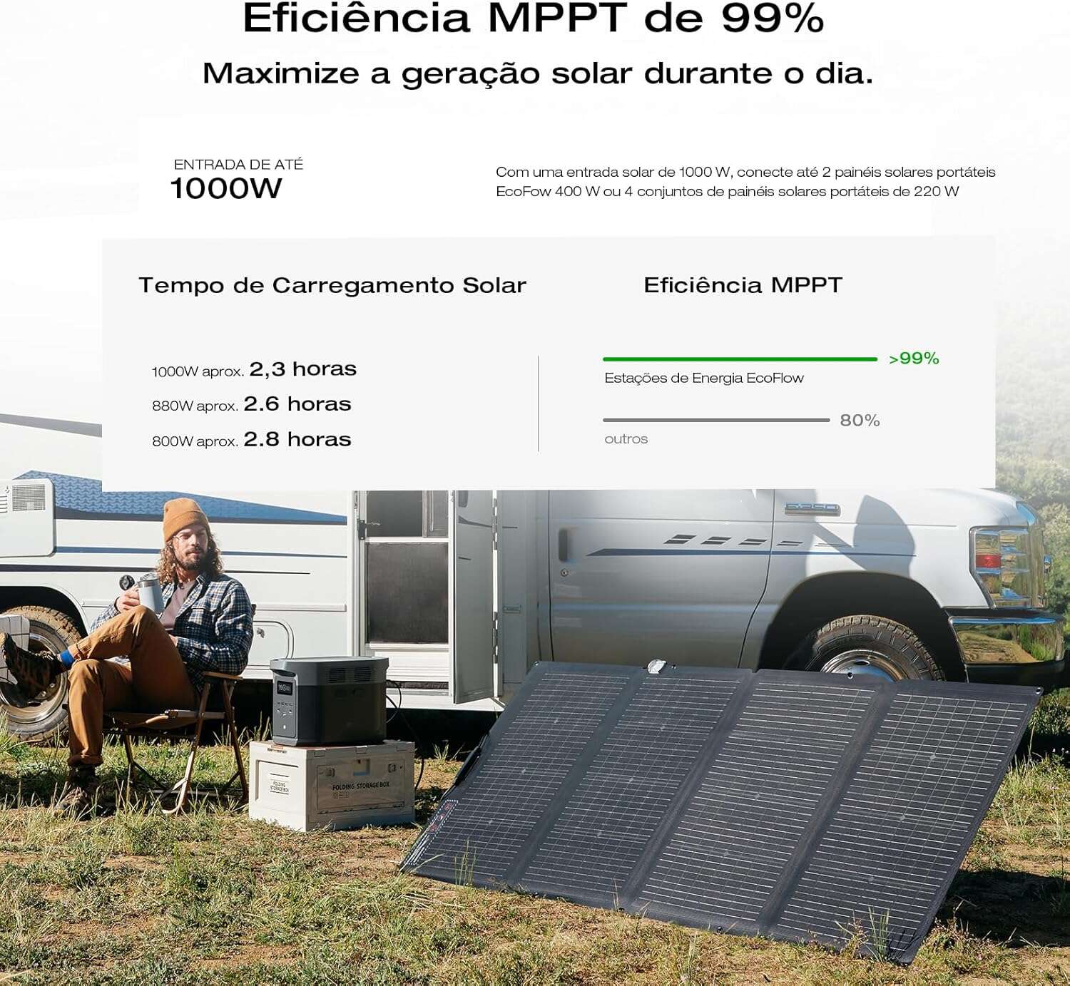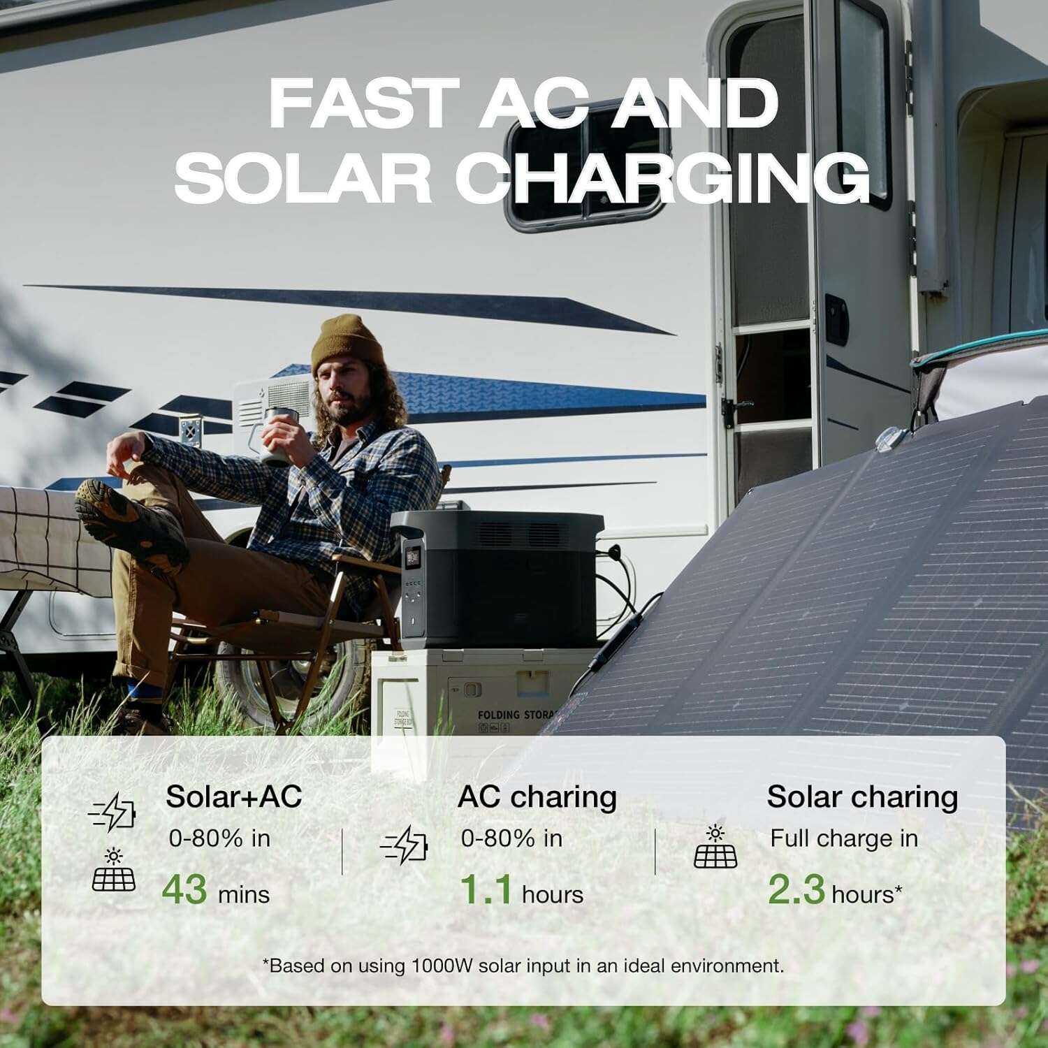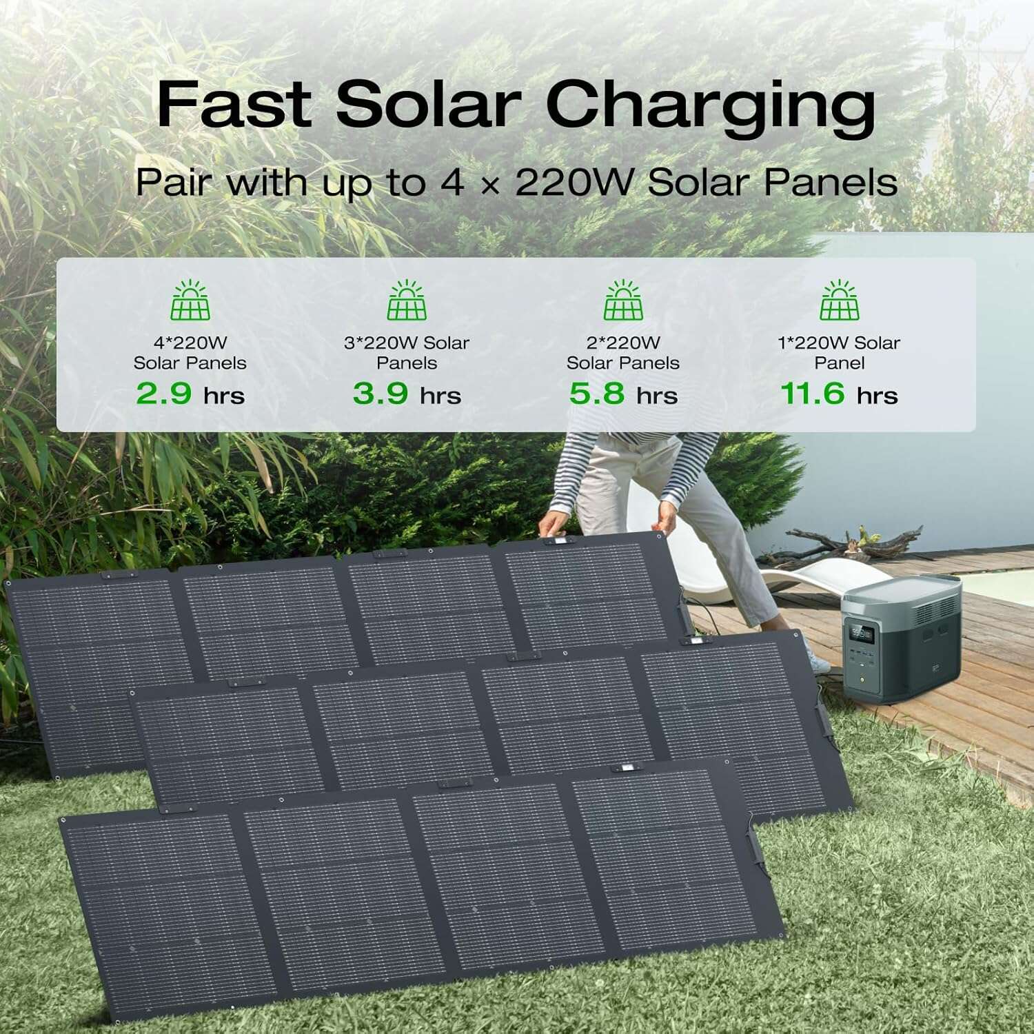 - Fast solar charging — compatible with multiple solar panels for off-grid use