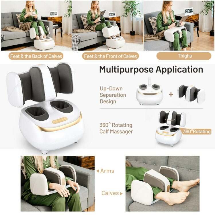 In addition, our heated foot massager is designed with advanced airbags and multiple active rollers for kneading, shiatsu, squeezing, rolling, and heat massage, providing comprehensive care for your feet, ankles, legs, and arms. Plus, 360-degree air compression helps effectively prevent varicose veins.