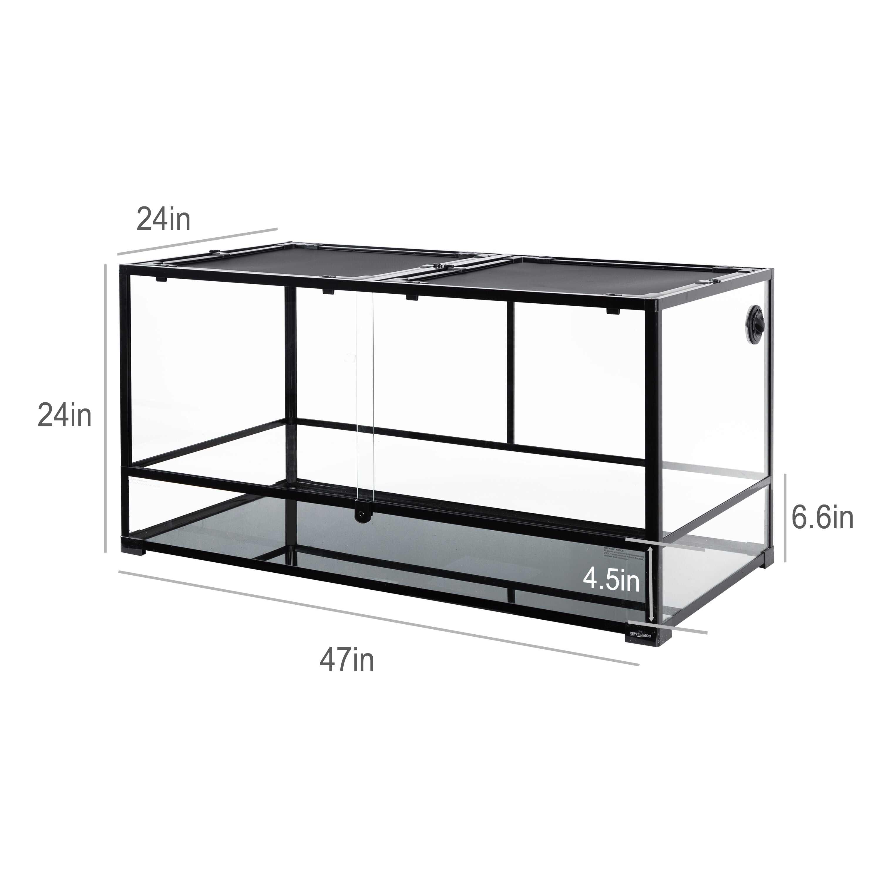 Built with durability and functionality in mind, the terrarium features a front-opening door system for easy access during feeding, cleaning, and maintenance. The sturdy screen top provides excellent ventilation and allows for secure mounting of lighting and heating equipment, while the tempered glass sides offer clear viewing of your reptile.