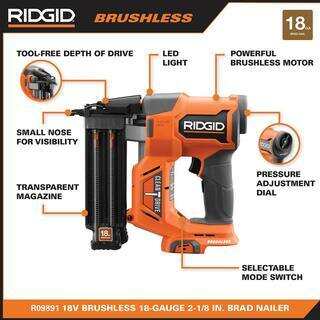 • RIDGID 18V Brushless Cordless Nailer Combo Kit with Brad & Finish Nailers, Battery & Charger