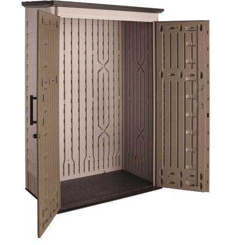 Keep your outdoor gear organized and protected with the Rubbermaid 52 Cubic Foot Vertical Storage Shed. This rugged, all-weather resin shed provides generous storage space while resisting rain, snow, UV rays, and temperature extremes — with no risk of rust, rot, or fading.
