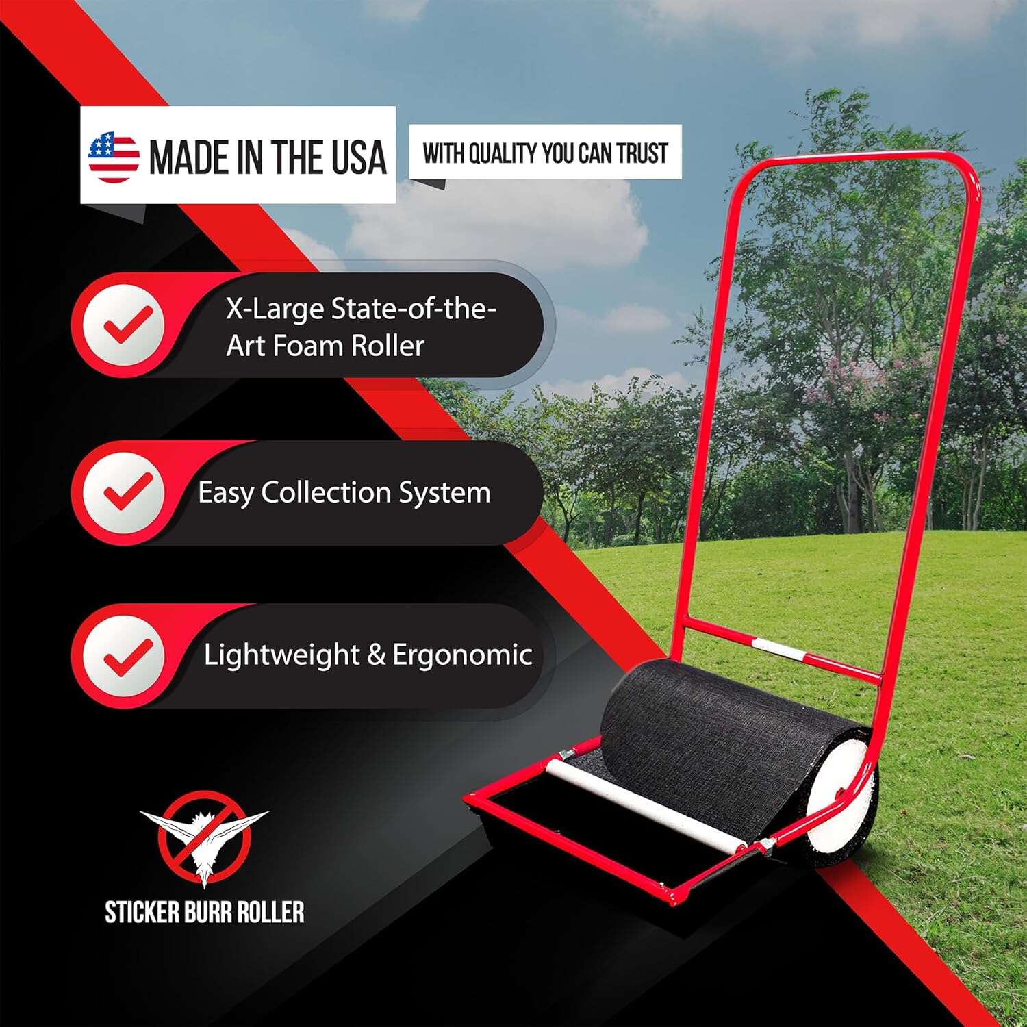 X-Large Sticker Burr Roller Remover Yard Tool, 18", Push Model 2.0