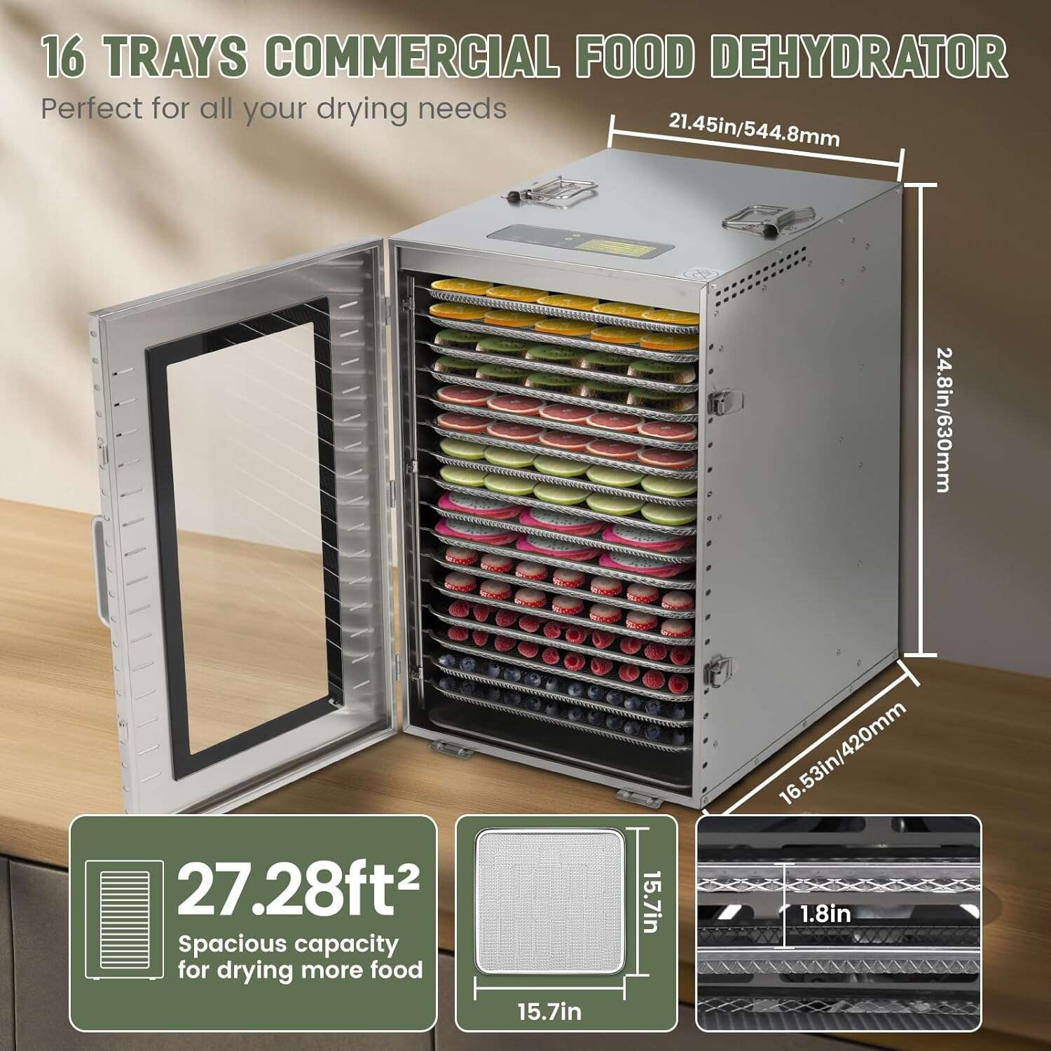 Commercial Food Dehydrator 16 Trays 1500W 70-190 F Large