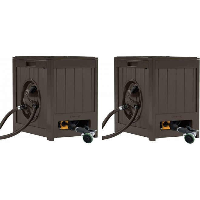 Suncast 125′ Aquawinder Auto Rewind Water Powered Yard Hose Reel, Java (2 Pack)