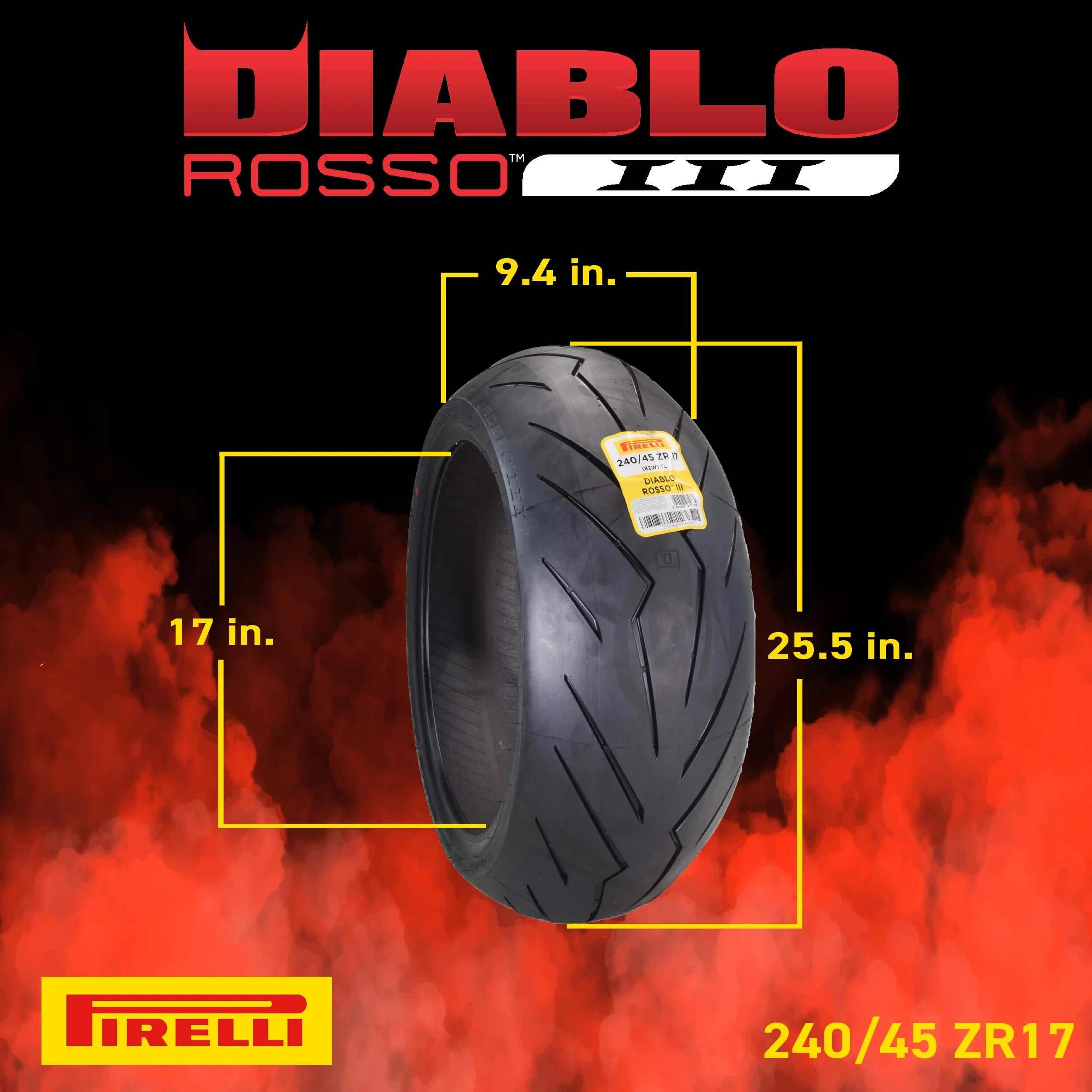 Pirelli Diablo Rosso III 120/70ZR17 Front & 240/45 ZR17 Rear Tire with Keychain